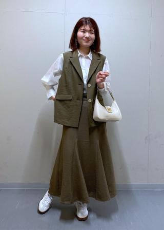 柔らかめの生地でゆるっと可愛らしい雰囲気で着られます。