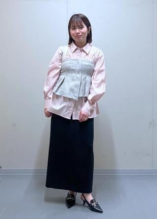 シャツを土台にビスチェ風のシャーリングを施した今年らしいデザインシャツ。