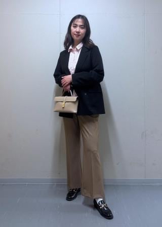 アーム、見頃はゆったりしていて中に薄手のニットを着て秋冬も着回せるシャツです!