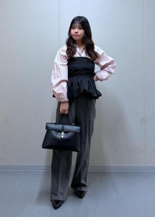 ジャケットやカーディガンのインナーとしても、シャーリングが映えるブラウスです。