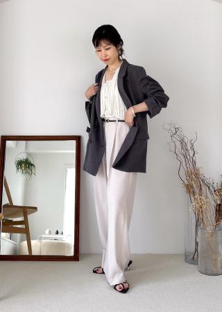 サラッとした素材感で、ややしぼ感があります。きちんと感も叶えカジュアルな雰囲気にも◎