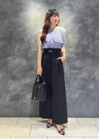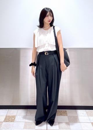 ボトムに裾をインするとプリーツ部分がふんわりとするため、ウエストがすっきりとします。