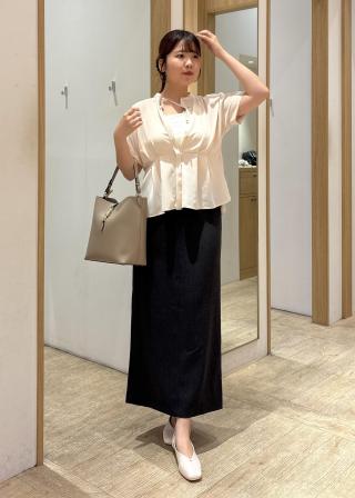 ブラウスは程よいボリュームのため、ワイドパンツやマーメイドラインのスカートなどボトムに広がりがでてもバランスが取りやすいです。