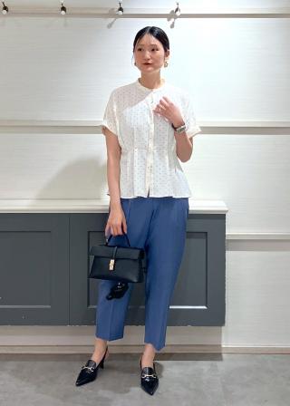 ブラウスは程よいボリュームのため、ワイドパンツやマーメイドラインのスカートなどボトムに広がりがでてもバランスが取りやすいです。