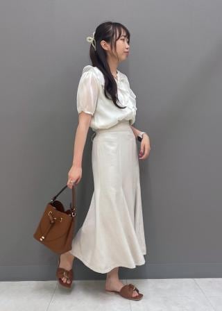 通勤やお仕事シーンにも最適なブラウス。パンツで甘さ抑えめに、マーメードスカートで甘さを加えより女性らしく着こなしを楽しんでいただけます。