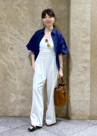 ・裾をインしないで決まるペプラムシルエット。軽い羽織りとしてもおすすめです。
