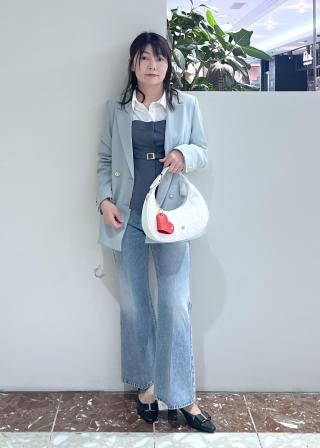 ボトムをデニムに変更しても素敵に決まります。