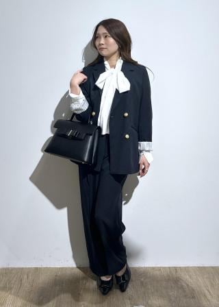 ベストやジレのインナーにすれば通勤やセレモニーシーンにもおすすめ◎。片リボン結びにしたり、タイ風に結んだりお好みの結び方をお楽しみください!