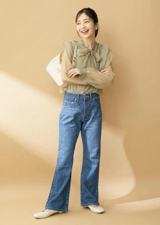 フェミニンスタイルにはもちろん、デニムとのカジュアルスタイルもかわいいです。