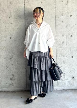 ・バックのプリーツがスタイリングに動きを持たせてくれます。バックスタイルも決まる1枚!