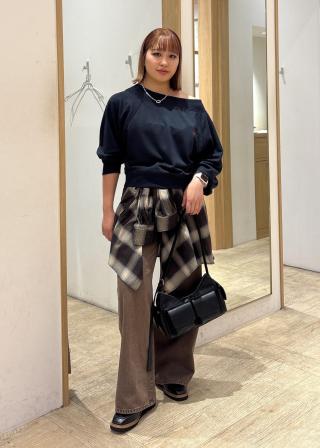 ゆとりがあって生地が薄めなので、秋冬はハイネックのインナーを合わせていただくのがおすすめです。