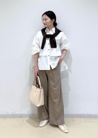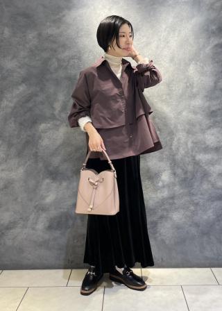フロント開けて羽織としてミニ丈ボトムに合わせるとバランスよくスタイリングができます。美easyシリーズなどキレイめパンツとの相性も◎。もちろん釦を閉じてトップスとしても着回しの効くアイテムです。