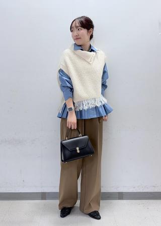カーディガンやプルオーバーなどニットのアイテムをレイヤードして裾と襟を出してポイントを見せるのがおすすめです!もちろん1枚着としても◎