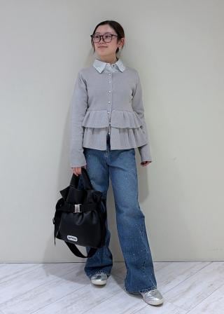 バックのゴムギャザーは程よくシェイプしながらもコンパクトめなシルエット。フロントを閉めて決まるデザインですが開けて羽織としても◎。