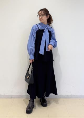 骨格ストレートで肩周りが気になる体型ですが体型を拾わず、大きめリボンが体型カバーしてくれます♩