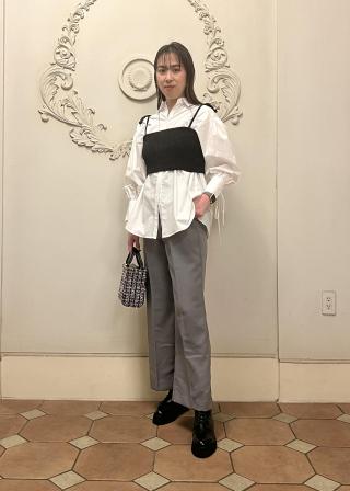 インナーにハイネックを重ね着してもかわいいし、そのままでも可愛いです。