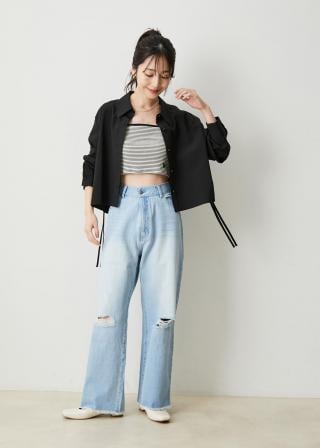 幅広いボトムと合わせやすい着丈で、キャミワンピ等とのバランスも良いシャツです。