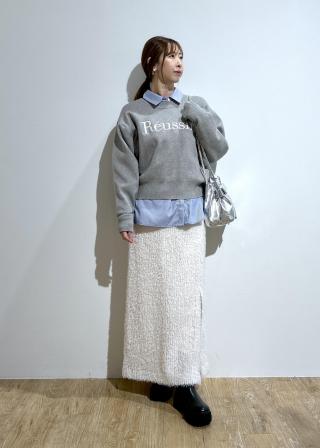 秋冬の着こなしとして、シャツのインナーにカットソーなどのレイヤードスタイル。