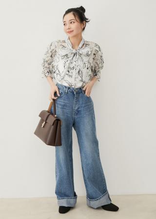 ボウタイを付けて華やかなお出かけスタイルから、シンプルなブラウスとしてお仕事服としてもおすすめ◎