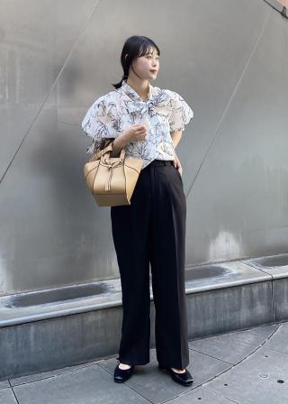ボウタイを付けて華やかなお出かけスタイルから、シンプルなブラウスとしてお仕事服としてもおすすめ◎