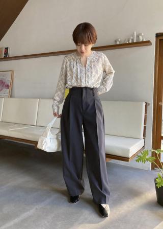 ・上にジャケットやカーディガンを羽織れる寸法にしており、汎用性の高いブラウスです。