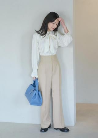 デニムに合わせた大人カジュアルスタイルや、ボウタイを付けてワンピースのインナーにしても華やかで◎