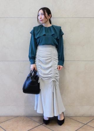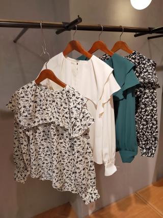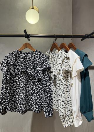 大きなラッフルで華やかな存在感を叶えるブラウスです。