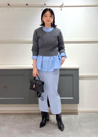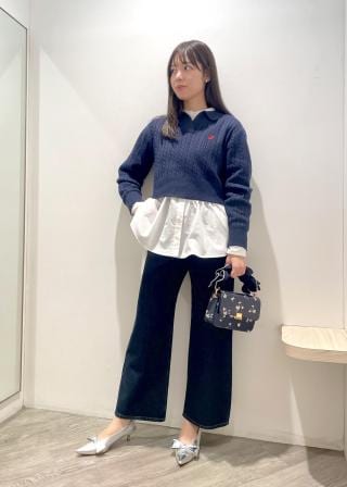 短丈のニットとレイヤードして、ボトムスにデニム合わせももちろん可愛いです。