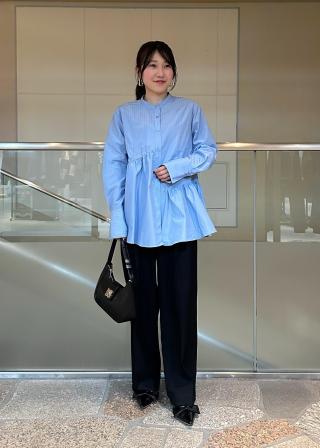 スタンドカラーを生かして、レイヤードしてみました。ネック部分のもたつきなく、イメージ通りスッキリ着られます。