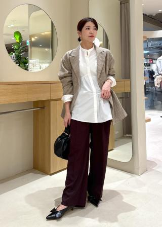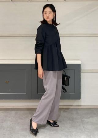 スタンドカラーを生かして、レイヤードしてみました。ネック部分のもたつきなく、イメージ通りスッキリ着られます。