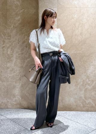 ワイドパンツにも好相性なのでオンオフで着まわせるアイテムです。