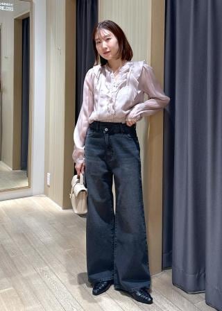 ひらりとしたシアーフリルがフェミニンな雰囲気を引き立たせるブラウス。