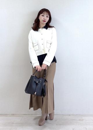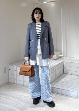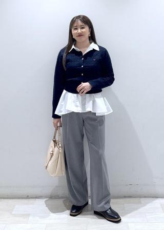 フレアに広がる女性らしいデザインなので、ハンサムなスラックスなど合わせてスタイリングするのがおすすめです。