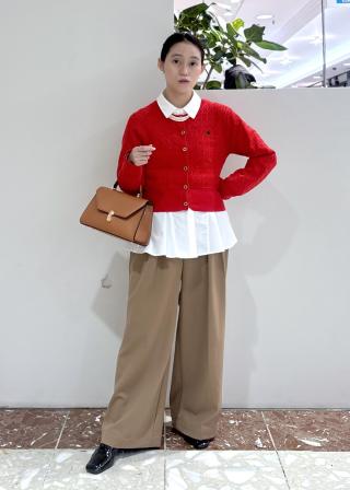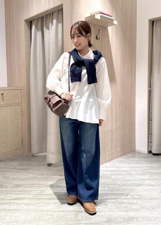 フレアに広がる女性らしいデザインなので、ハンサムなスラックスなど合わせてスタイリングするのがおすすめです。