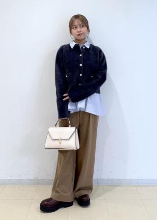 フレアに広がる女性らしいデザインなので、ハンサムなスラックスなど合わせてスタイリングするのがおすすめです。