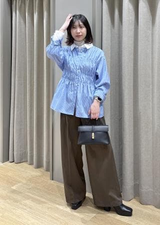 秋冬はニットのインナーとして使う事が多いと思いますが、レイヤードした時に見える襟のサイズ感や袖口のボタンデザインが可愛くて◎