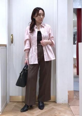 袖口周りはシャツのシャープさと女性らしいシルエットが共存するように深くタックを入れ、袖口に膨らみのあるフォルムにしています。
