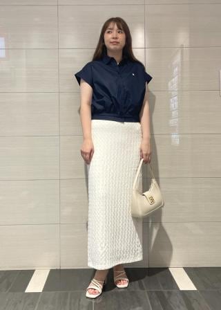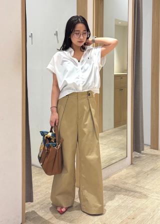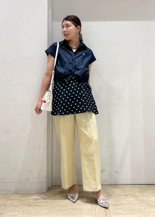 裾を絞りシルエットに立体感をつけて、ワイドデニムやアイラインのスカートなどに合わせてスタイリングして頂くのがおすすめです。