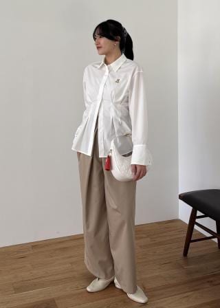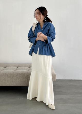 よりスタイルアップして見えるように身頃、ウエストをすっきりとさせ、着丈をカットしすっきりと見えるようにしました。ベルトループ付きでウエストマークして今年らしいスタイリングを楽しんで頂けるシャツになっています。