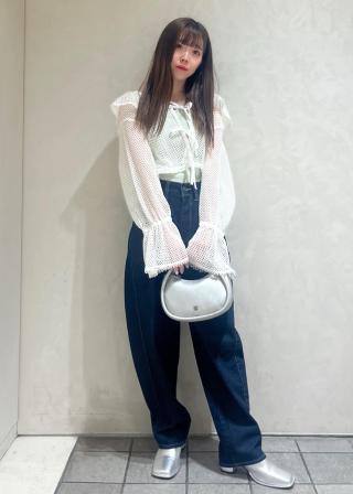 インナーはキャミソールでも、Tシャツ、ロンTでも可愛い。