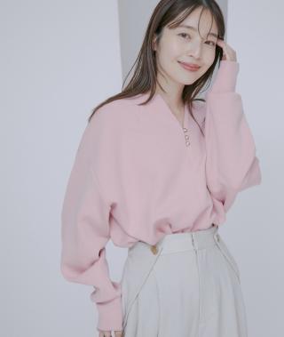 【新色】【スフレタッチシリーズ】【洗える】キラッと釦キーネックプルオーバー