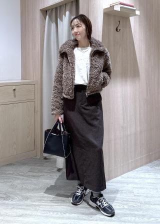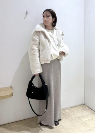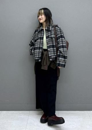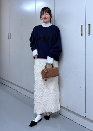 1枚でもインパクトのあるロゴとフォトなので、ボトムスは長めのスカートなどですっきり着るのがおすすめ。一押しはベロアやレーススカート!