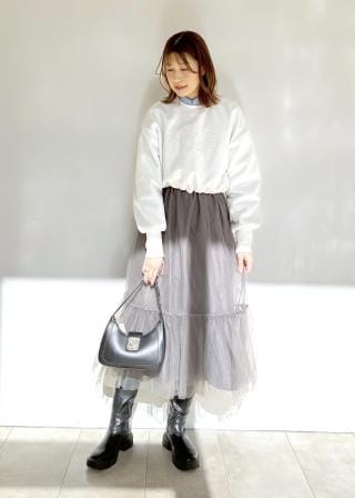 ホワイト着用モデル身長:160cm、着用サイズ:F