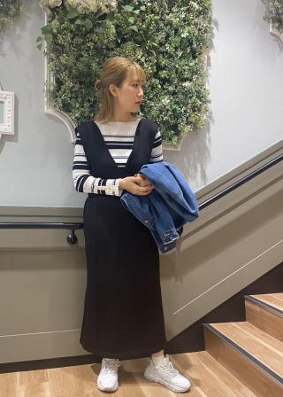 フィット感があるのでボトムインスタイルや、キャミワンピースとのレイヤードコーデがおすすめ。