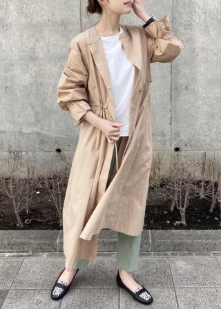 肩にタックを入れてアクセントを加えることで、シンプルながらも一癖あるデザインに仕上げました。