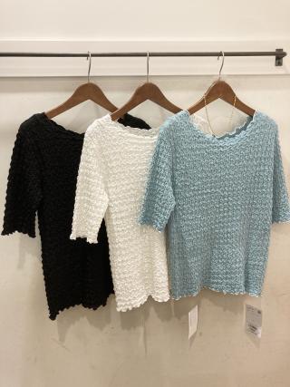 ふくれジャガード5分袖カットソー