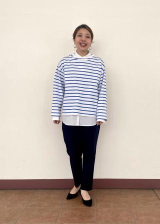 カジュアルなイメージのあるボーダーですが、着用すると女性らしい華奢な印象もプラスしてくれます。