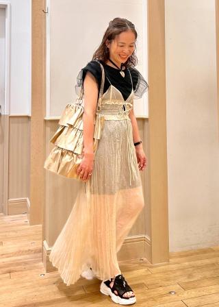 夏場のキャミワンピなどインナーづかいもコーデのポイントになります。