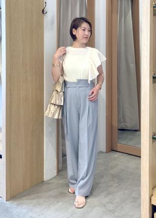 アシンメトリーデザインのTシャツとトレンドのフリルサッシュがSETの今年らしさが詰まった1枚。