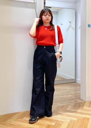 コンパクトなサイジングなので、ボトムはスカートパンツ選ばず合わせやすいです。オーバーオールやキャミワンピースの下にもおすすめです。